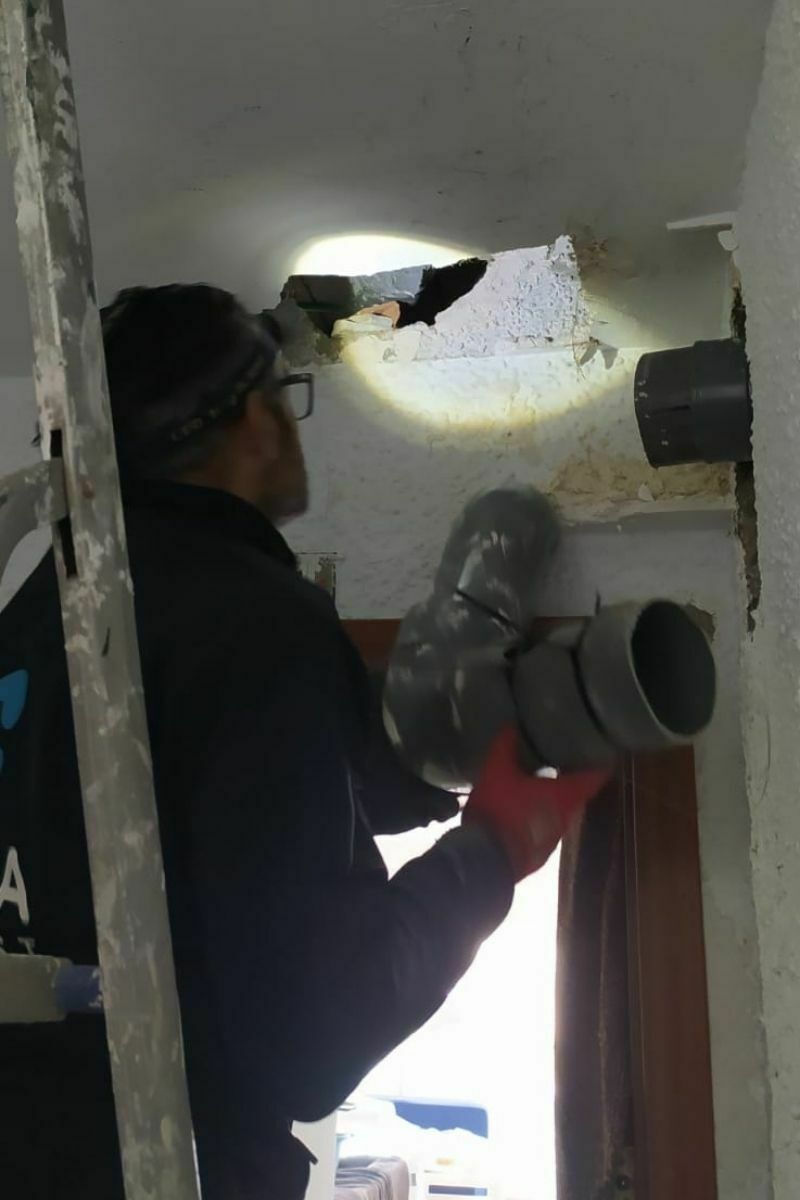 Desatoro y arreglo de bajante en comunidad de propietarios en Torremolinos. Vámonos a la